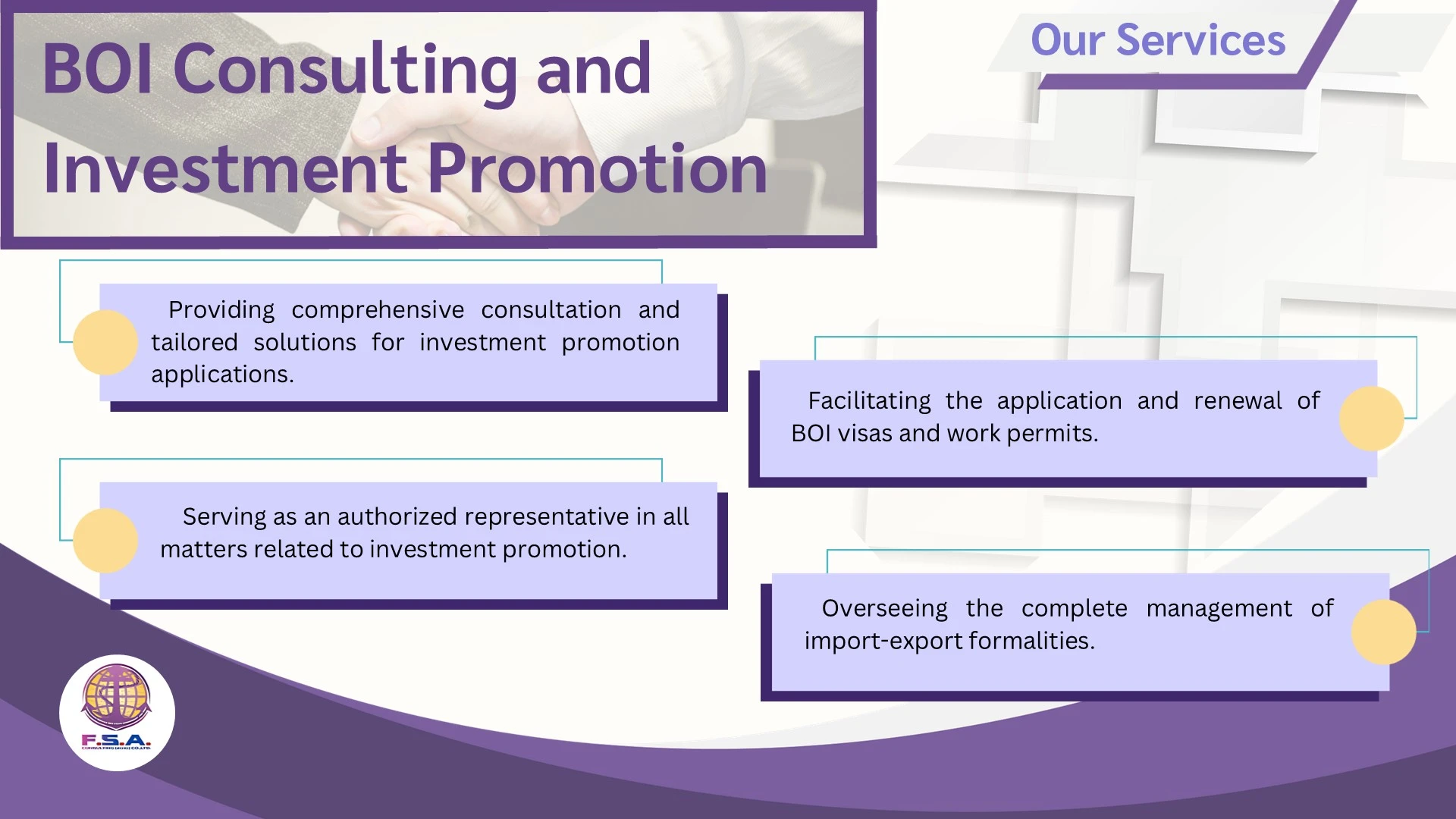 BOI (Borad of Investment) หรือ สำนักงานคณะกรรมการส่งเสริมการลงทุน จัดตั้งขึ้นเพื่อพัฒนาความสามารถในการแข่งขันทางธุรกิจและส่งเสริมการลงทุนให้ชาวไทยและชาวต่างชาติที่ทำธุรกิจในประเทศไทย และการลงทุนของคนไทยในต่างประเทศ